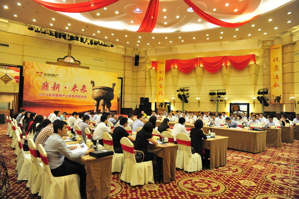 2014年7月15日下午13时30分,主题为鼎新未来的京基地产上半年总结大会于晶都酒店晶宫厅顺利召开。深圳公司部门经理以上、异地公司第一负责人、商业公司、小额贷款公司、物业公司副总经理以上人员共85人参加会议,陈华董事长、巴根总裁出席了本次会议,并发表了重要讲话。