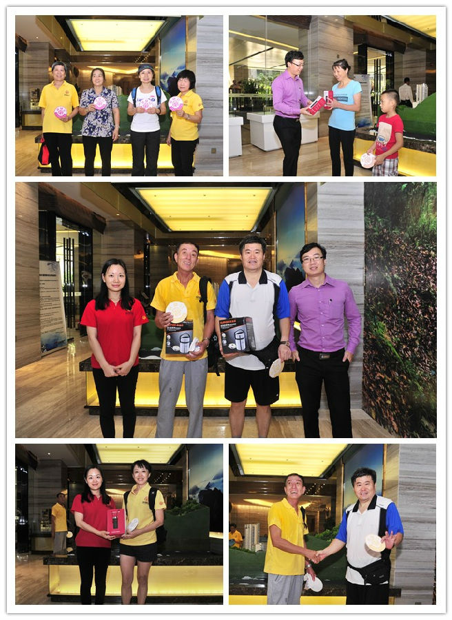 经过大概一个半小时的登山活动,会员们陆陆续续的返回云景梧桐营销中心,为增加活动的趣味性,此次登山活动增加了竞技环节,按时间先后顺序登上终点的前十位会员可凭在终点领取的奖牌,获得精美礼品一份。获得奖品的会员满心欢喜,开心的和大家分享胜利的喜悦。