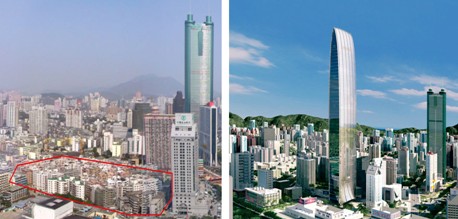 经过近几年的城市更新后,深圳的城市布局更加合理,功能更加明晰。特别是汇集了各大商业银行及中国人民银行深圳支行办公大楼的罗湖蔡屋围地区,无不彰显着其作为深圳市金融中心的地位。在改造前,该地区建筑布局严重不合理:城中村"握手楼"林立、道路狭窄、交通不畅、居住环境恶劣、卫生条件较差、市政设施严重缺乏、消防隐患四伏,严重影响了整个金融中心的形象,经过更新打造而成的新蔡屋围金融中心区,由中国人民银行深圳中心支行的金库发行库及其附属用房、回迁安置房、深圳第一高楼京基100大厦及高级商务公寓构成,设施齐全,条件完善,整体规划水准直接与国际接轨。
