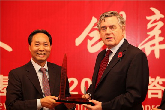 京基集团董事长陈华与英国前首相布朗合影。