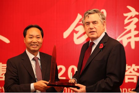 京基集团陈华董事长向英国前首相戈登?布朗赠送京基100大厦模型礼物