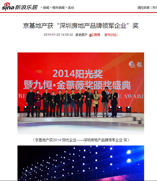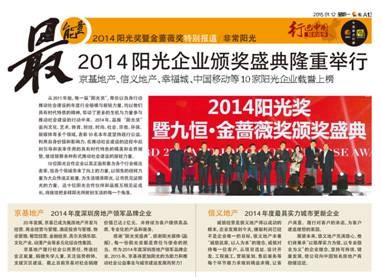 (京基地产获2014 “阳光企业——深圳房地产品牌领军企业”奖)