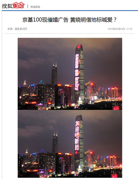 【搜狐焦点】京基100现催婚广告 黄晓明借地标喊爱