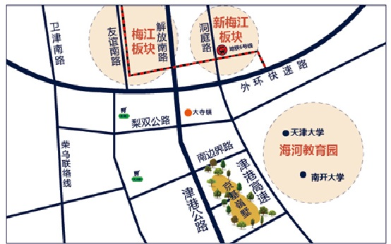 天津城市发展,一路繁华向南。京基·嶺墅正处于城市发展的核心之地,纳揽环境、交通、区域等大配套下的绝佳价值潜能,15分贯穿津门,距离“海河教育园”仅3分钟车程,地铁6号线贯穿周边。梅江、天嘉湖、团泊湖三大城市级风景区环抱,融汇多元价值,执掌繁华之境!
