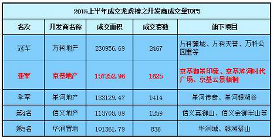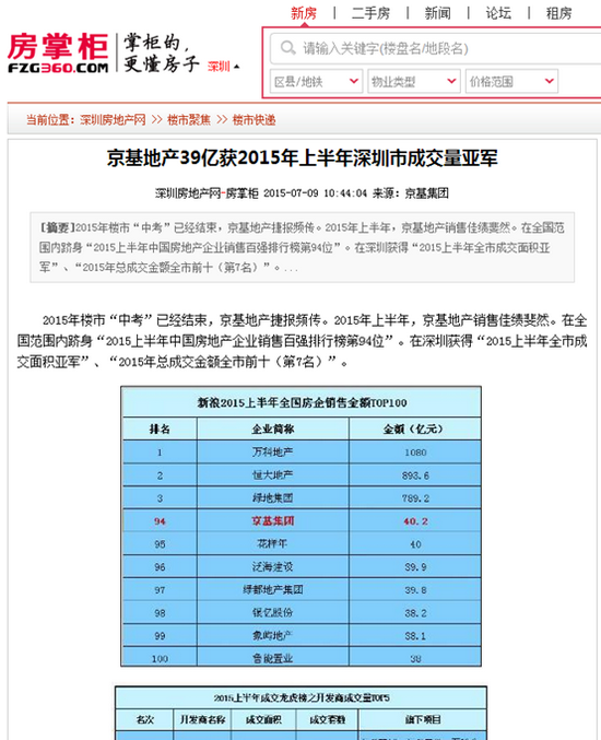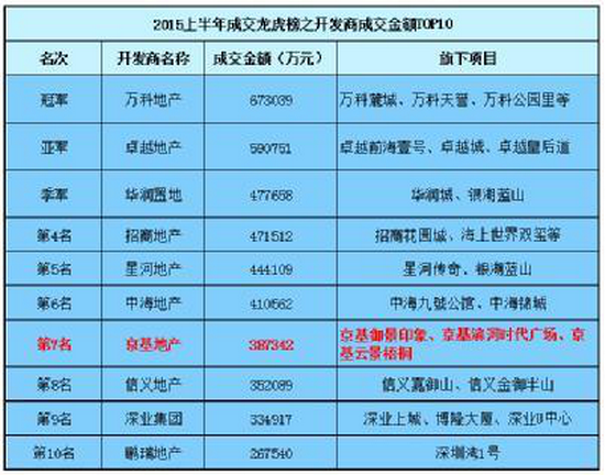 2015年楼市“中考”已经结束,京基地产捷报频传。2015年上半年,京基地产销售佳绩斐然。在全国范围内跻身“2015上半年中国房地产企业销售百强排行榜第94位”。在深圳获得“2015上半年全市成交面积亚军”、“2015年总成交金额全市前十(第7名)”。