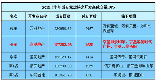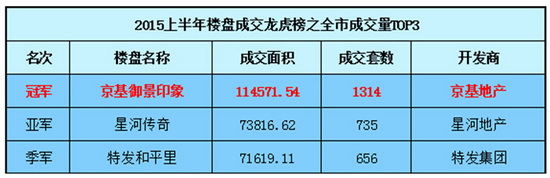 京基·御景印象以压倒性优势夺取2015年深圳市上半年成交量冠军