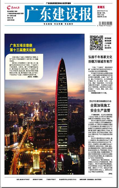 今年获得第十三届中国土木工程詹天佑奖的项目共有38个项目,广东省有5个项目获奖,分别为:澳门大学横琴岛新校区、深圳京基100大厦(见图)、广东省河口至平台(粤桂界)高速公路、深圳盐田港区集装箱码头扩建工程、深圳地铁五号线,其中前三个项目均由广东省土木建筑学会推荐申报。