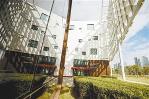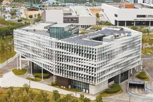 (南科大行政楼是一处绿色建筑,楼顶安装有太阳能设备,种有绿色植物)