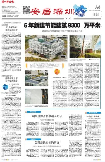 我市大力推进绿色建筑区域化、规模化全面发展,在国内率先推进保障性住房、政府投资项目100%按绿色建筑标准建设,推进绿色建筑规模化发展。2013年7月,我市发布国内首部促进绿色建筑全面发展的政府规章——《深圳市绿色建筑促进办法》,要求所有新建民用建筑全面执行绿色建筑标准,全市绿色建筑发展至此正式步入法治化的快车道。
