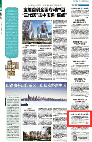 继2014房地产业务收入达70亿元创京基集团历史最高纪录后,2015年京基集团深圳、北京、天津、湛江四地,房地产销售业绩及商业地产租金收入共计104亿元。