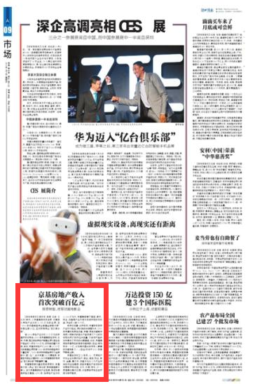 京基集团常务副总裁熊伟表示,京基首次进入房企“百亿俱乐部”具有里程碑式意义,将为京基集团的产业拓展、持续发展提供坚实基础。2015年,除房地产业务收入104亿元外,京基集团旗下酒店、餐饮、物业、动画等产业均有长足进步和较好收益,综合收入超10个亿。