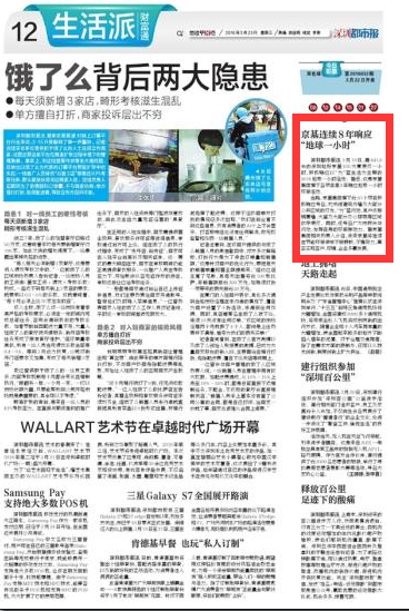 当晚,京基集团旗下近20个项目积极响应号召,均关闭建筑外墙及大部分公共区域的灯光,“为”蓝行动,其户外玻璃幕墙、大堂及大部分办公楼层等区域依序熄灯。同时,还号召广大市民参与行动,发挥自身的环保原动力。据京基集团相关负责人介绍,未来京基将继续在节能环保领域不辍耕耘,不懈努力,真正实现客户、环境、企业多赢发展。