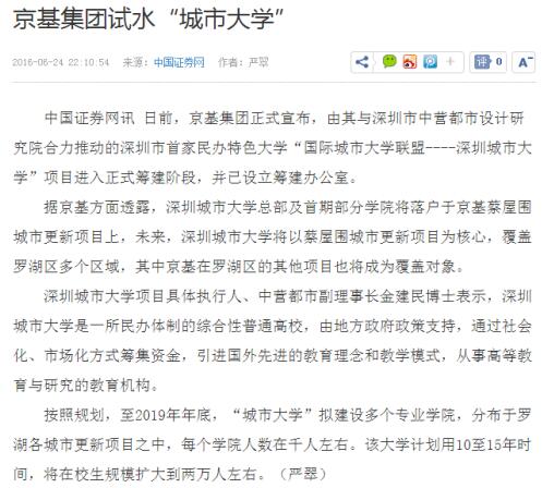 日前,京基集团正式宣布,由其与深圳市中营都市设计研究院合力推动的深圳市首家民办特色大学“国际城市大学联盟----深圳城市大学”项目进入正式筹建阶段,并已设立筹建办公室。