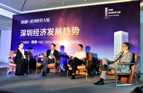 京基地产营销管理中心副总经理赵亮先生致辞表示,京基集团自成立以来,始终与深圳城市共荣,助力城市发展,所投资建设的深圳地标——京基100大厦,在深圳创造了一个全球性的金融标志,成为深圳城市名片。延续和升华京基100大厦建设的经验与智慧,京基?滨河时代大厦成为深圳福田商务平台的标杆。而作为中国最具影响力的经济学者,樊纲先生百忙之中莅临京基?滨河时代大厦论道深圳经济发展趋势,既是对深圳经济的一次深刻剖析,也是对京基?滨河时代大厦所发挥的总部经济作用的认可,是对京基集团的一次有益指导。