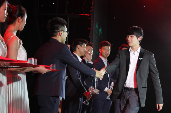 上图: 2016年8月20日晚,深圳京基100大厦瑞吉酒店,“加拿大心连心慈善基金会10周年庆典”现场,到场嘉宾上台领奖。