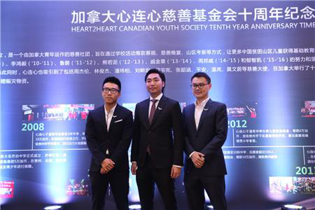 加拿大心连心慈善基金会发起人、京基集团副总裁陈家荣先生(中)、黄韬先生(左)、朱英楠先生(右)
