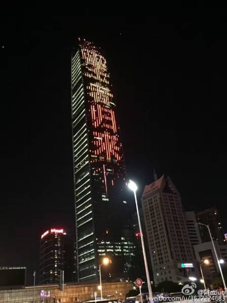 【央广网】深圳大厦亮灯恭喜中国女排 大赞“王者归来”