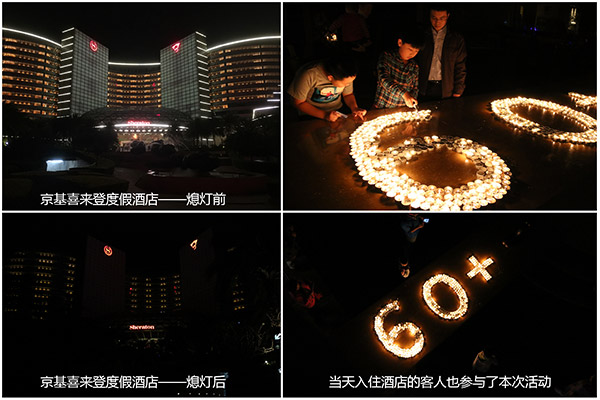 “地球一小时”由世界自然基金会(WWF)于2007年在澳大利亚发起,现已成为一个全球参与规模最大的开源性环保行动,2009年被引入中国。自此,京基集团在深圳、北京、天津、湛江等地的项目,在每年3月最后一个周六晚上8点半到9点半,关掉不必要的灯和其他耗电设备,持续响应该全球性环保活动,发挥企业的社会责任。