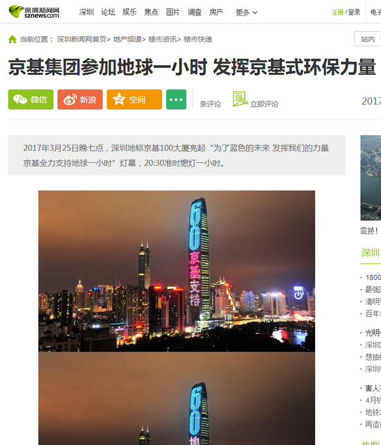【深圳新闻网】京基集团参加地球一小时 发挥京基式环保力量