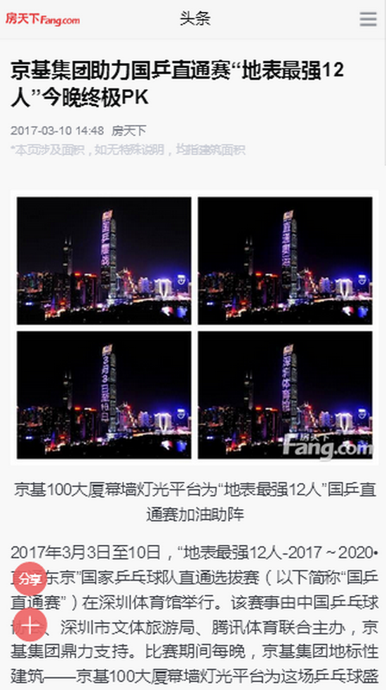 【房天下APP】京基集团助力国乒直通赛“地表最强12人”今晚终极PK
