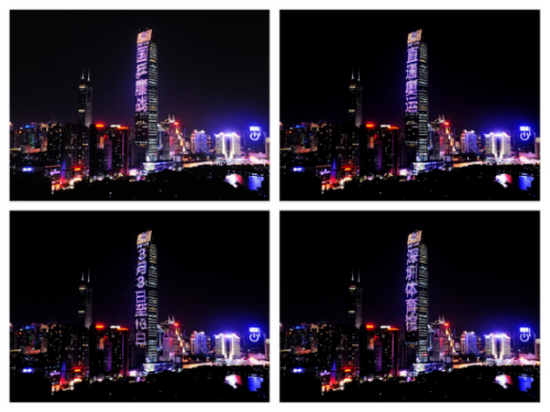 京基100大厦幕墙灯光平台为“地表最强12人”国乒直通赛加油助阵