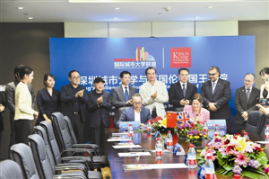 昨日上午,正在筹建中的深圳城市大学与全球名校——英国伦敦国王学院正式“联姻”,双方合作框架协议签字仪式在京基100大厦隆重举行。此举是深圳城市大学在国际化办学的道路上取得的又一成果。