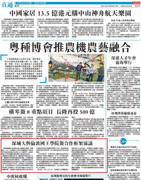 12日,深圳城市大學與英國倫敦國王學院合作框架協議簽約儀式在京基100大廈舉行。這是深圳城市大學在國際化辦學道路上邁出的新步伐。