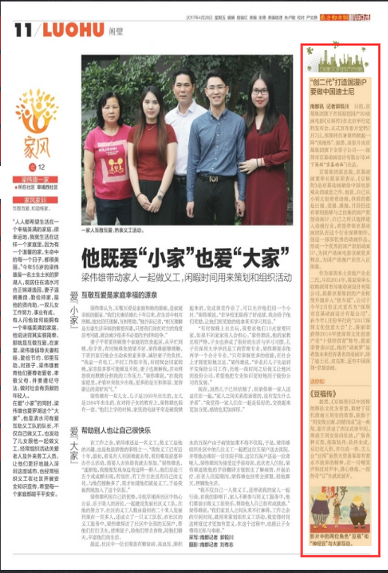 作为深圳本土房地产企业二代,早在2014年,陈家荣牵头收购深圳市昂驰动画设计有限公司,助推京基集团的产业转型升级步入“快车道”,公司于今年2月份正式更名为“深圳市京基动画设计有限公司”。在今年1月份举行的“2017深圳文化创意大会”上,陈家荣获得2016年度深圳文化创意产业“十佳经营者”称号。陈家荣曾表示过,他的“动画梦”是希望未来世界著名的动画IP,除了迪士尼、皮克斯,还有中国深圳·京基动画。