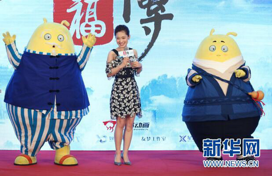 影片角色“豆福”和“神经豆”在现场与大家互动。新华网发