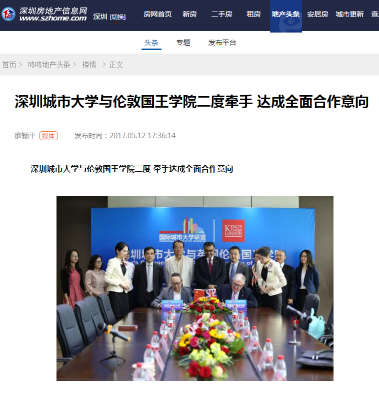 [房地产信息网]深圳城市大学与伦敦国王学院二度牵手,达成全面合作意向