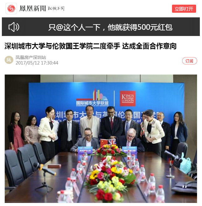 [凤凰房产APP]深圳城市大学与伦敦国王学院二度牵手, 达成全面合作意向