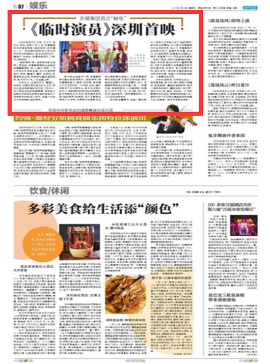 影片联合出品方代表、京基集团常务副总裁熊伟表示,《临时演员》是京基集团首次“触电”的成果,是京基文化产业投资的一大突破。他说,国产电影的大好发展势头,影片主创团队的实力,电影题材的现实性与话题度,影片拍摄地位于深圳,是京基选择投拍《临时演员》的原因。将产业触角延伸到文化领域,主要是对中国影视业的发展前景充满信心,也是京基集团谋求创新发展,打造产业新动能,寻找新的利润增长点的内在需求。如今,京基集团拥有自己的动画公司——京基动画,其首部原创3D动画电影《豆福传》也将于今年7月7日上映。可以说,投资《临时演员》,是京基集团进入文化产业的创新尝试。