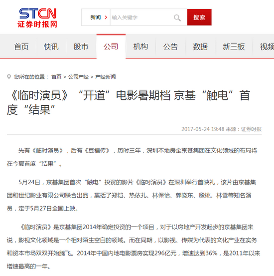 5月24日,京基集团首次“触电”投资的影片《临时演员》在深圳举行首映礼,该片由京基集团和世纪影业有限公司联合出品,囊括了郑恺、热依扎、林保怡、郭晓东、殷桃、林雪等知名演员,定于5月27日全国上映。