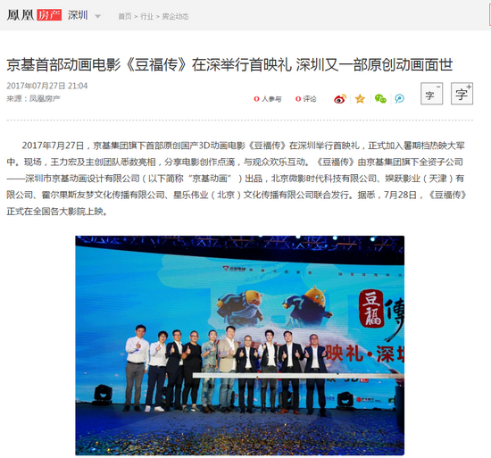 【凤凰房产】京基首部动画电影《豆福传》在深举行首映礼 深圳又一部原创动画面世