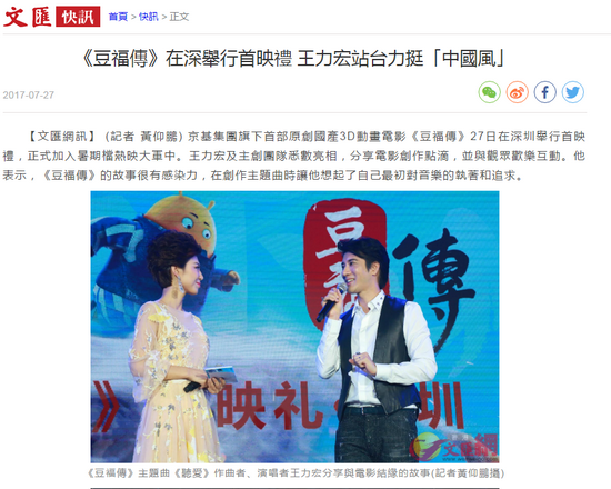 京基集團旗下首部原創國產3D動畫電影《豆福傳》27日在深圳舉行首映禮,正式加入暑期檔熱映大軍中。王力宏及主創團隊悉數亮相,分享電影創作點滴,並與觀眾歡樂互動。他表示,《豆福傳》的故事很有感染力,在創作主題曲時讓他想起了自己最初對音樂的執著和追求。