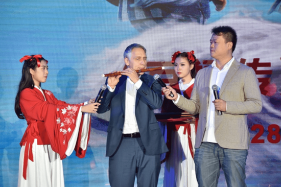 播放完主题曲《听爱》MV后,现场响起雷鸣般掌声。在观众们的欢呼声中,力宏上台与大家分享“结缘”《豆福传》的背后故事。他说,当了解到《豆福传》的创作背景后,很受感动,让他在创作主题曲时和方有了很多灵感。“《豆福传》的故事很有感染力,在创作主题曲时,我想起了自己最初对音乐的执着和追求。”最后,力宏呼吁大家到影院观看支持《豆福传》,要像豆福一样坚持自己的梦想,坚持就会有收获。