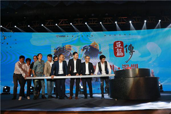现场以推动石磨的形式完成了《豆福传》深圳首映礼的启动仪式