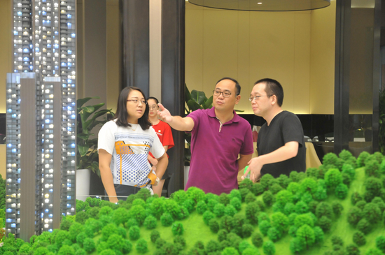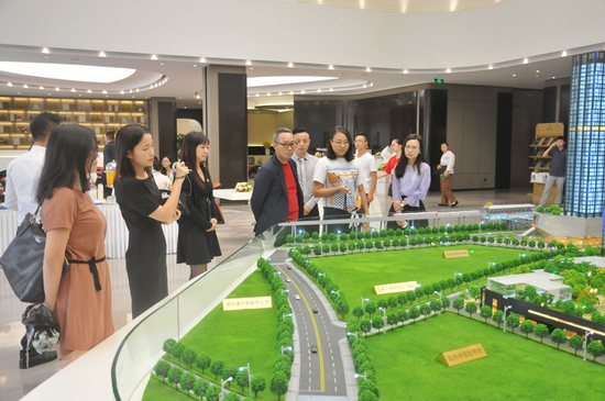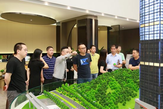 京基御景峯展示中心于9月16日亮相全城。上午9点,宾客们纷至沓来,全城名仕共聚一堂。京基集团董事长陈华、京基集团常务副总裁熊伟、京基地产总裁杨玉雄、京基地产营销管理中心总经理赵亮,也莅临项目现场参观指导,在具体了解了项目的展示情况、配套以及工程进度等后,他们对御景峯项目的工作表达肯定,并希望大家从心出发,发挥各部门的力量,把项目做到最好。