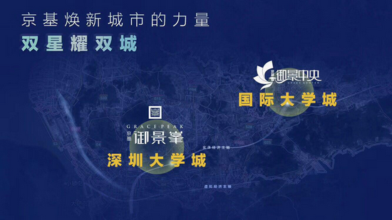 时隔四年,秉承责任筑基的使命感,京基布局深圳双大学城,隆重推出深圳南山大学城项目——京基御景峯,龙岗国际大学城项目——京基御景中央,“双星耀双城”,给深圳居民带来一次人居品质的再升级。