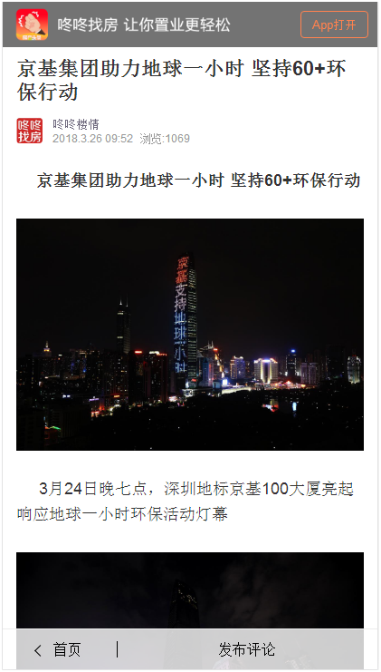 当晚,京基集团旗下京基100大厦、京基·滨河时代大厦、KKMALL、南山京基百纳广场、沙井京基百纳广场、KK ONE、深圳瑞吉酒店、京基晶都酒店、大梅沙京基喜来登度假酒店、京基海湾大酒店等写字楼、住宅、商场、酒店近30个项目,纷纷关闭建筑外墙及大部分公共区域的灯光一小时,且通过自有传播平台号召租户、住户及客户,一起加入这场全球性的环保运动,共同保护地球。