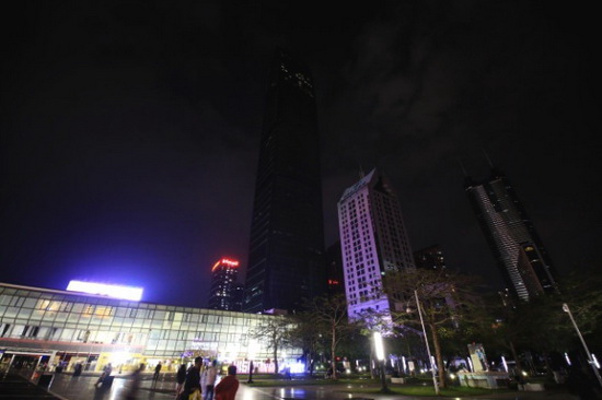 3月24日晚七点,深圳地标京基100大厦亮起响应地球一小时环保活动灯幕