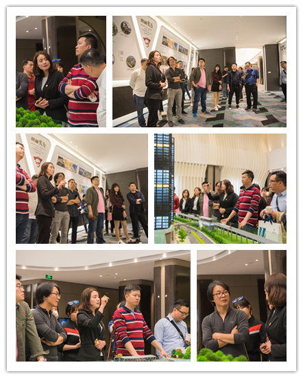 下午2点,会员们乘坐京基会特派巴士陆续到达御景峯展示大厅,在享用点心和饮品并稍作休息后,大家在沙盘附近集合,聆听现场销售人员向大家介绍御景峯。京基·御景峯是深圳唯一背山面水,既通地铁同时具有口岸功能的物业,销售人员详细地向大家介绍了项目特点以及区域交通、周边配套等情况,并对大家提出的问题耐心进行一一解答。在了解了项目的基本情况后,大家兴致勃勃地前往参观样板房。