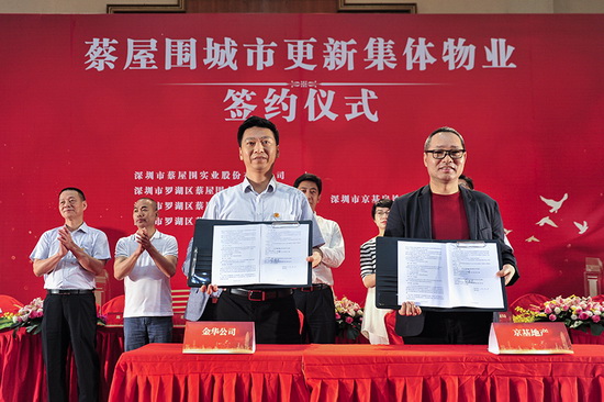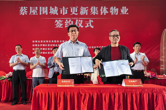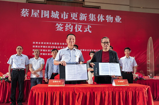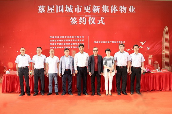 随后,京基地产与蔡屋围股份公司签署了合作协议,并分别与蔡屋围股份公司及其子公司——深圳市罗湖区蔡屋围金龙实业有限公司、深圳市罗湖区蔡屋围金塘实业有限公司、深圳市罗湖区蔡屋围金华实业有限公司签署了搬迁补偿安置协议,蔡屋围城市更新统筹片区启动集体物业拆迁签约仪式圆满结束。