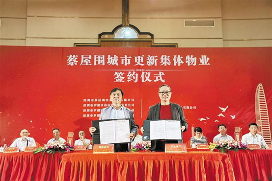 签约仪式上,蔡屋围股份公司董事长蔡洪亮和京基房地产公司董事长陈华分别签署《合作协议》和《搬迁补偿安置协议》;随后陈华分别与蔡屋围金龙、金塘、金华三个二级公司负责人签订《搬迁补偿安置协议》。