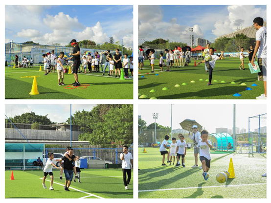 活动现场设置了游戏环节和足球课堂知识问答,其中游戏环节共有四个小游戏:“龙潭虎穴”(闯关)、“七上八下”(颠球)、“齐心协力”(接力)、“百步穿杨”(射门),让现场的孩子和家长在玩中感受足球的魅力与乐趣。此外,孩子们还在外籍教练的带领下,学习运球、传球、停球、射门等多项规范动作,深度学习足球这项全球性的运动,激发其对足球的喜爱。