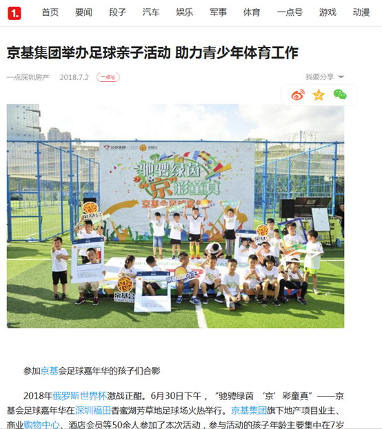 正如一位参加本次活动的家长接受媒体采访时说到:现在的孩子都是独生子女,足球又是一项需要很强的团队合作意识的运动,通过参加这样的活动,除了让孩子在活动中得到乐趣且有所学习,激发孩子的运动热情,同时可以培养孩子团队合作的能力。京基集团在这方面做了很多引导性的工作,一直坚持举办各种运动类活动,创造机会和平台让孩子和家长去接触去尝试,从原先被动地参加活动到现在主动积极去报相关体育运动的培训班,这是很大的转变。