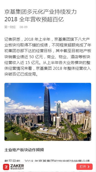 记者获悉,2018 年上半年,京基集团旗下八大产业板块均取得不错的成绩,不同程度超额完成了年初集团总部下达的经营目标,其中截至目前地产板块销售业绩近 50 亿元,商业、物业、酒店等板块经营收入近 15 亿元。从上半年各大业务模块的整体经营情况来看,京基集团 2018 年整体经营收入突破百亿已成定局。