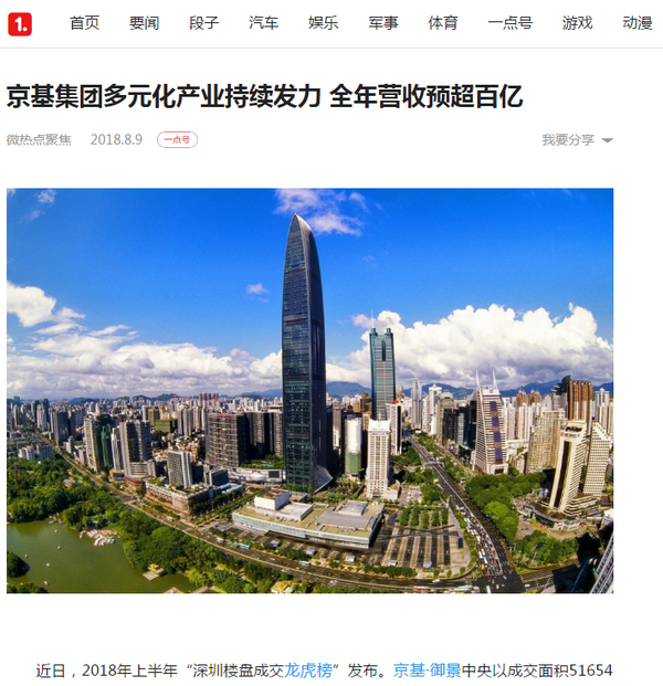 【一点资讯】京基集团多元化产业持续发力 全年营收预超百亿