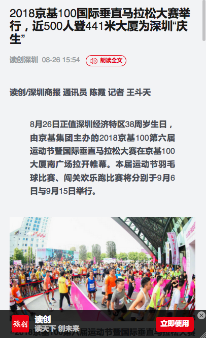据承办方京基物业介绍,京基100国际垂直马拉松大赛已连续举办六届,是京基100大厦一年一度的品牌活动,已成为国内具有较高知名度的垂直马拉松赛事。本次大赛线上报名近两千人,经严格按照垂直马拉松对个人健康状况的要求进行筛选,最后审定450名符合参加要求的选手。作为京基集团的经典作品,京基100大厦是深圳“精神地标”与“物理地标”双融合建筑,不仅象征着深圳高度、深圳速度,也代表着敢为天下先的深圳精神。登顶100层,爬升垂直高度累计441.8米,难度极大,比拼的不只是体力,更是毅力与挑战自我的勇气。