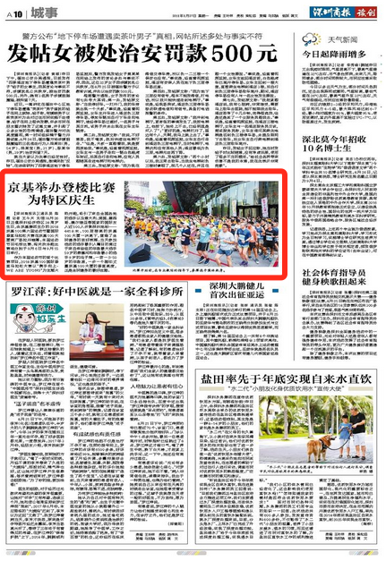 【深圳商报讯】(通讯员陈霞记者王斗天文/图)8月26日正值深圳经济特区38周岁生日,由京基集团主办的2018京基100第六届运动节暨国际垂直马拉松大赛在京基100大厦南广场拉开帷幕。本届运动节羽毛球比赛、闯关欢乐跑比赛将分别于9月6日与9月15日举行。